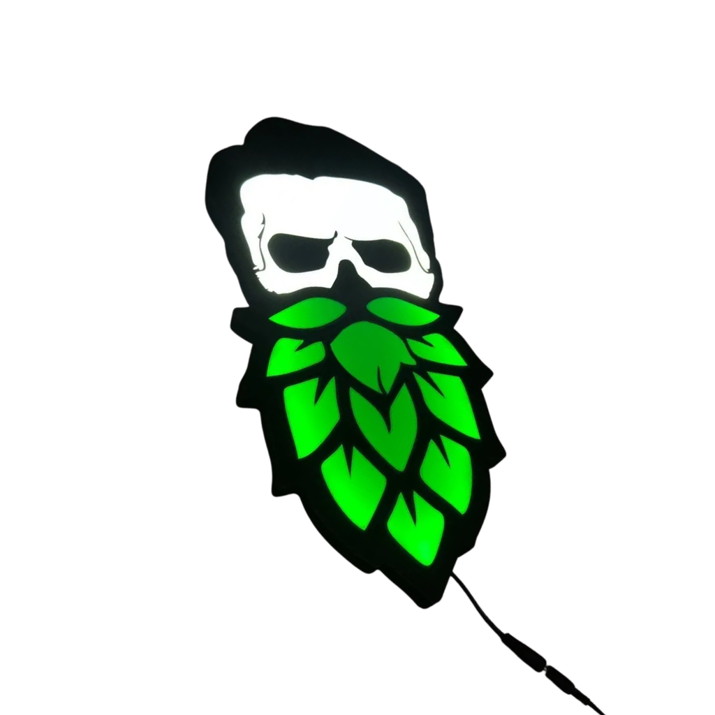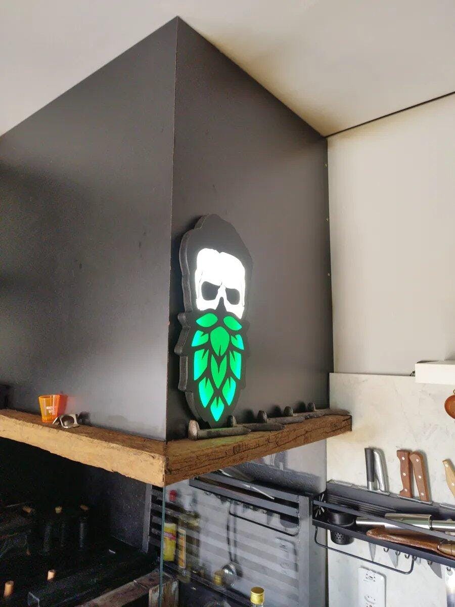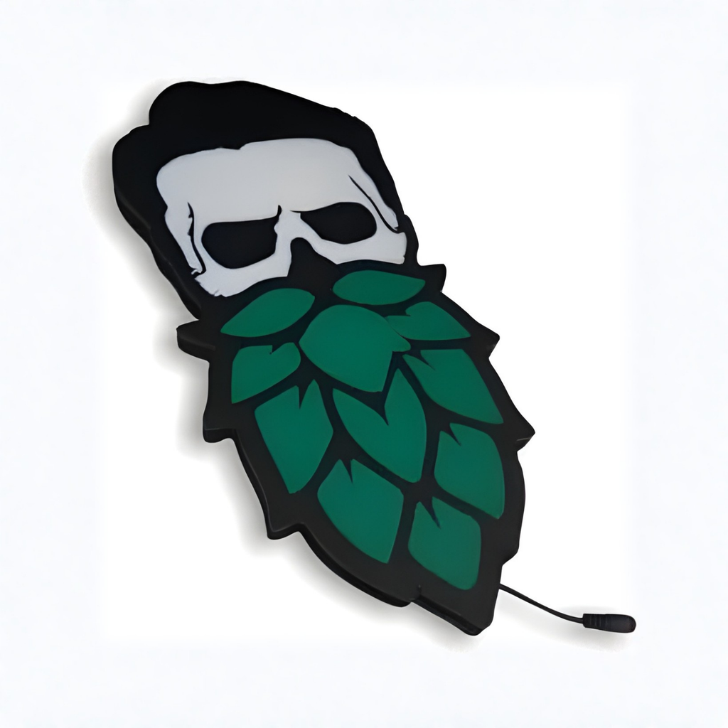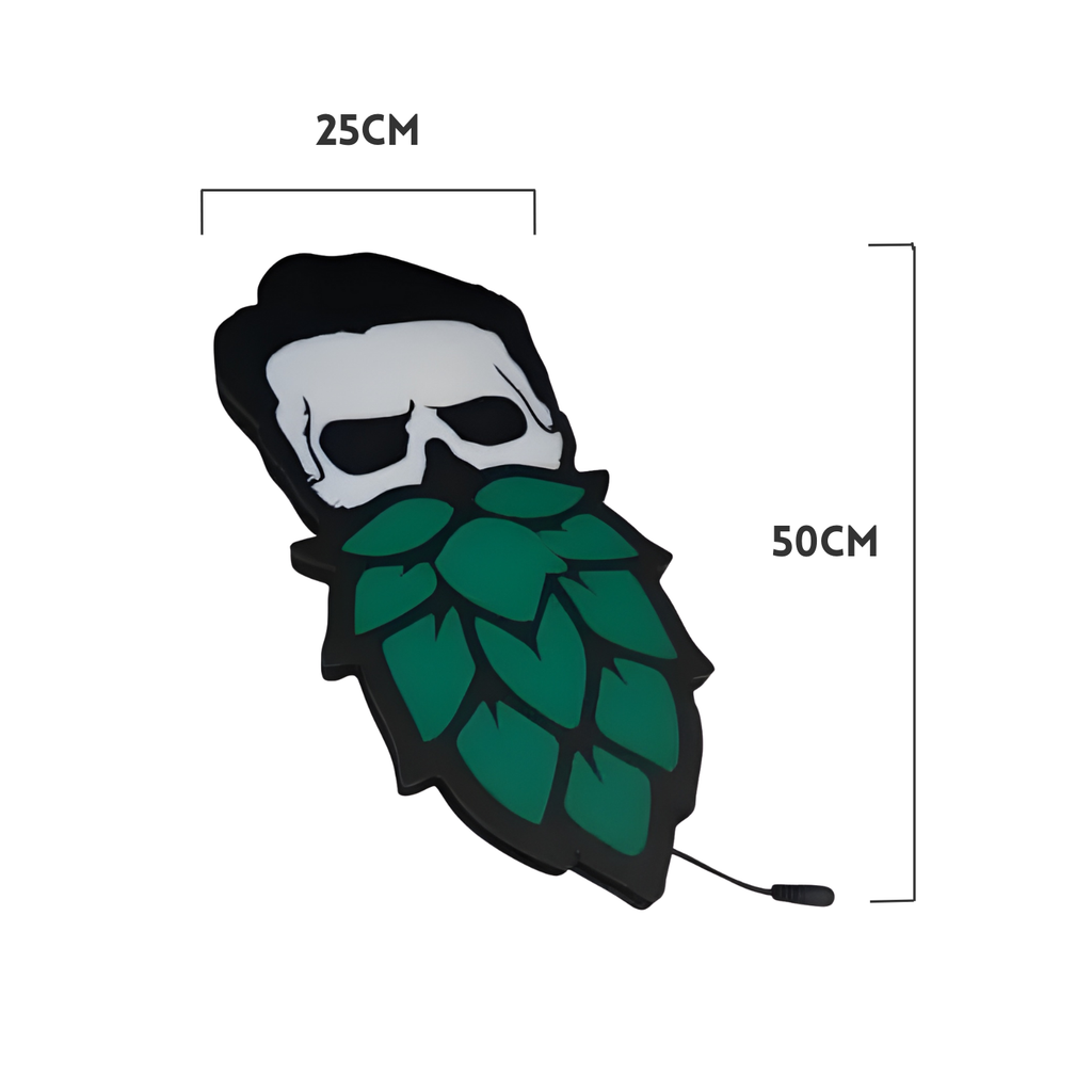 Deixe seu ambiente mais autêntico e cheio de estilo com o Luminoso em LED - Caveira Barba Folha de Lúpulo. Com design moderno e temático, ele é ideal para quem aprecia o universo cervejeiro e deseja dar um toque especial a bares, pubs, cervejarias artesanais, áreas gourmet, espaços de degustação e ambientes criativos. 🍃🍺
