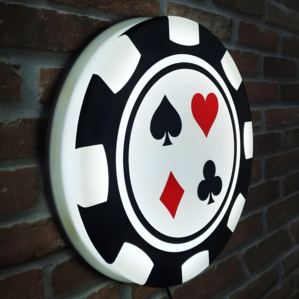 Dê um toque de ousadia e sofisticação ao seu ambiente com o Luminoso em LED Poker Ficha. Com design temático e moderno, ele é ideal para criar uma atmosfera envolvente e cheia de estilo em salas de jogos, bares, lounges, áreas gourmet, espaços de entretenimento, eventos e ambientes criativos. ♠️🎲